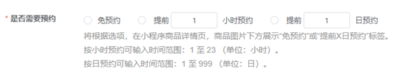 -预约说明:无需预约,如遇高峰期需等位/提前x天预约;【此处需与商品设置中选项保持一致】